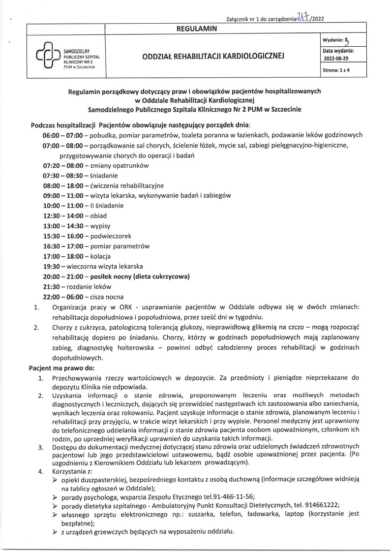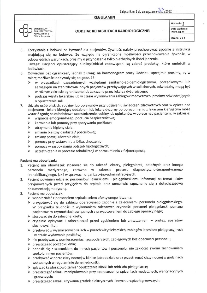 Oddział Rehabilitacji Kardiologicznej Kliniki Kardiochirurgii